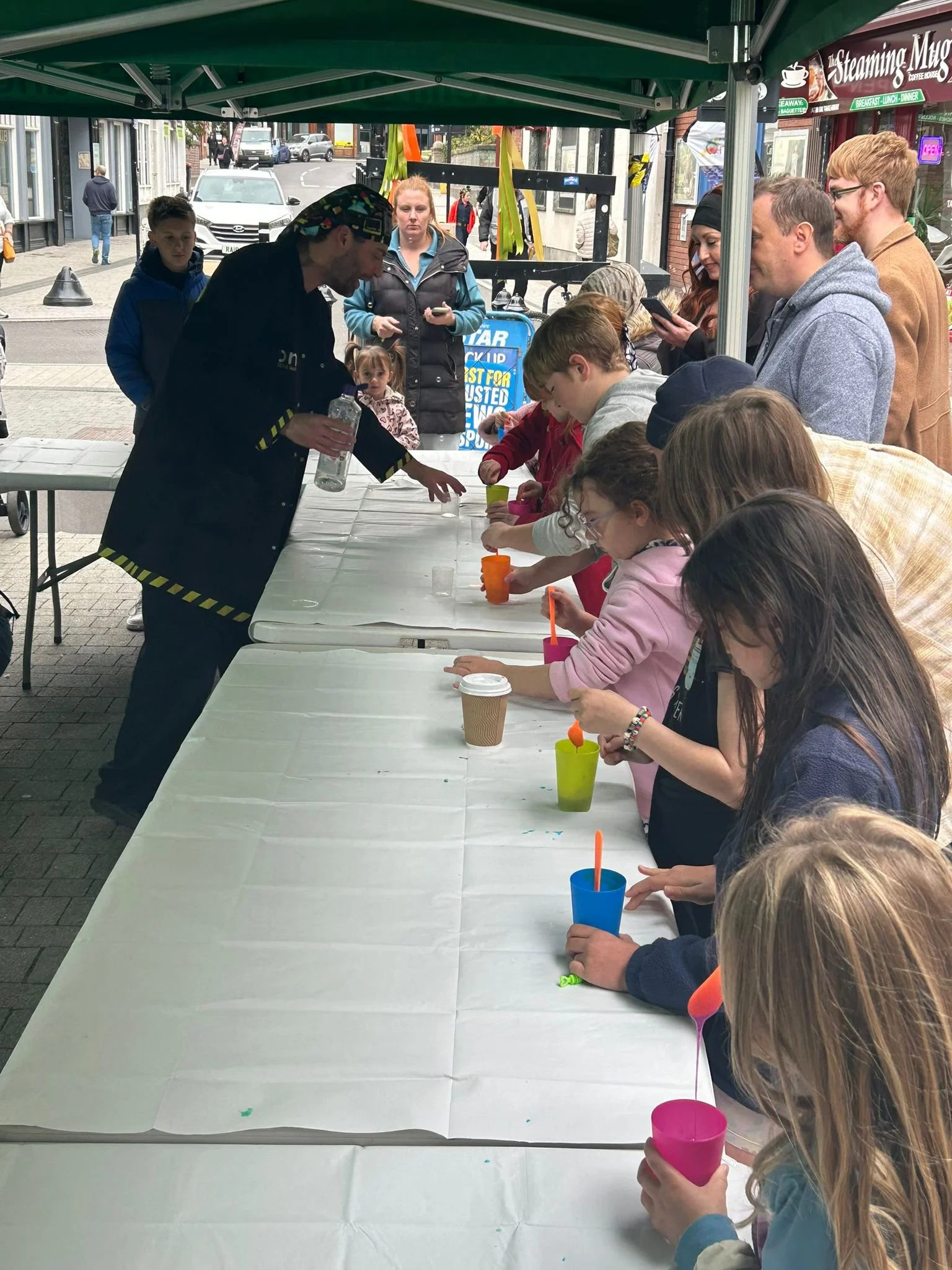 Our popular science strolling experience allows our presenter to move freely through your event, pulling a trolley packed with over 30 hands-on science demonstrations. These interactions can naturally evolve into larger, coned-off demonstrations, creating moments that draw in crowds and spark curiosity.